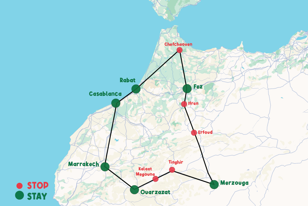 Experience the allure of Morocco with our day tours, discovering the blue hues of Chefchaouen, the cultural richness of Fes, and the scenic wonders of the Middle Atlas in one unforgettable journey.